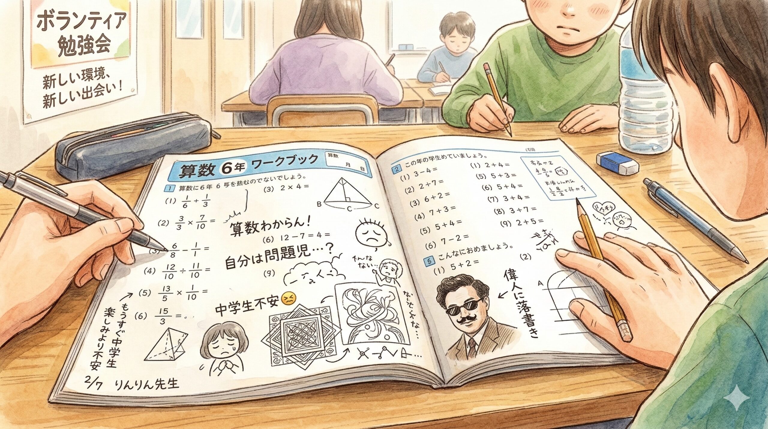 もちろん学校からもらったワークを大事にした方がいいとは思いますが、思い返せば自分も教科書の偉人に落書きをして友だち同士で見せ合ってたなーと思い出しました